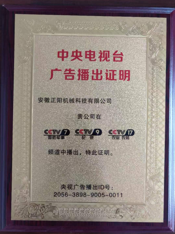 農業機械推廣鑒定證書